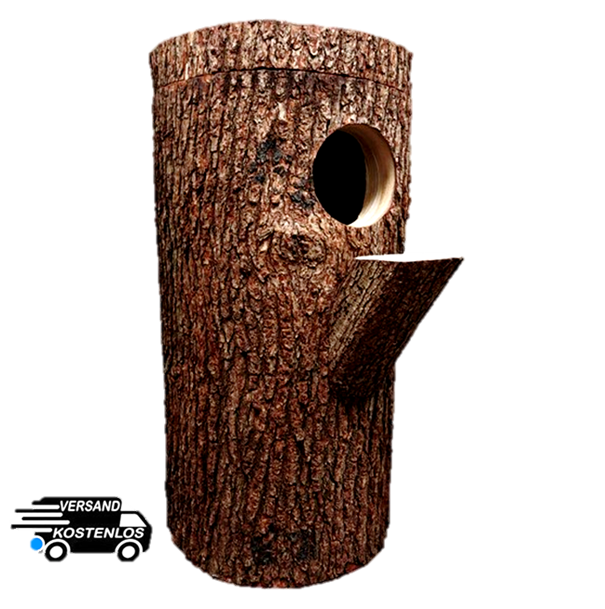 Sie erhalten die abgebildete Naturstamm-Nisthöhle aus Eiche. Diese ist hochdruckgereinigt, getrocknet und mit Welleisen im Boden, Deckel und Ring ausgeschlagen. Inkl. einer sauber eingefrästen Nistmulde, Einstieghilfen, Anflugast und einer seitlichen Kontrollöffnung.